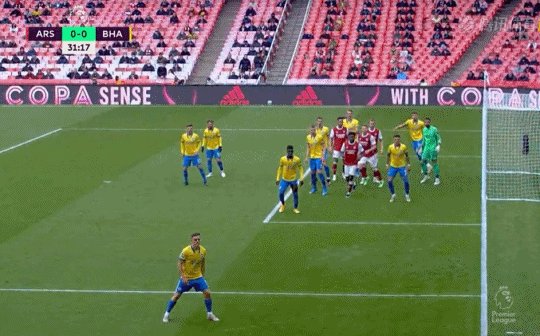49'钱伯斯右侧横传,尼古拉·佩佩得球后破门,阿森纳1比0布莱顿!